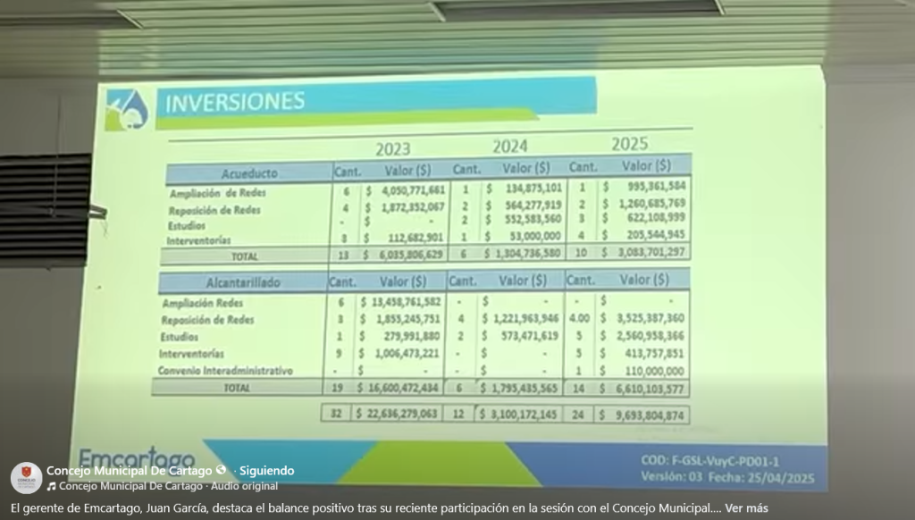 El gerente de Emcartago, Juan García, destaca el balance positivo tras su reciente participación en la sesión con el Concejo Municipal.