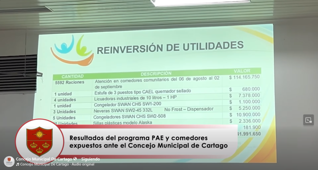 La intervención permitió resaltar la labor realizada en los comedores comunitarios, el Programa de Alimentación Escolar (PAE) y otros contratos vigentes, evidenciando resultados positivos y compromiso institucional.